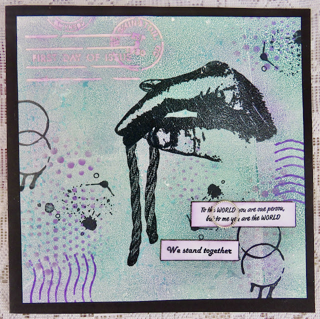 At the top a quick make this week using my current favourite Oxide Saltwater Taffy which goes so well with Cracked Pistachio. I used AALL and Create Patches background stamp repeat stamped with those two colours and spritzed with water to create the background, the flower is from a new'ish set called Elegant Stems stamped into an inked offcut and paper pieced, the circles stamped with elements from Fully Fledged and the sentiment from Textured Florals. The pot is a Two Red Robins die inked up to make it look a bit more weathered.
